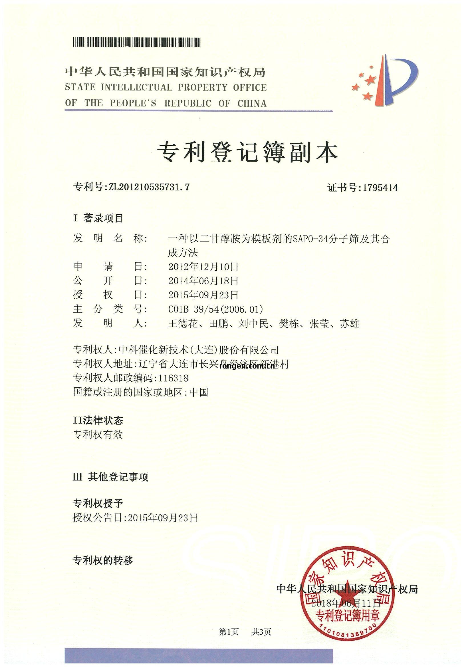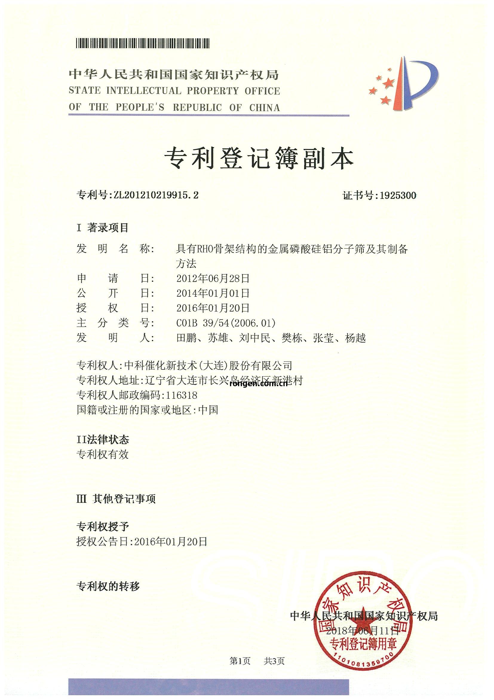 具(ju)有RHO骨(gu)架(jia)結(jie)構的金(jin)屬(shu)磷(lin)酸矽鋁分(fen)子(zi)篩及(ji)其制備方法(fa)1925300