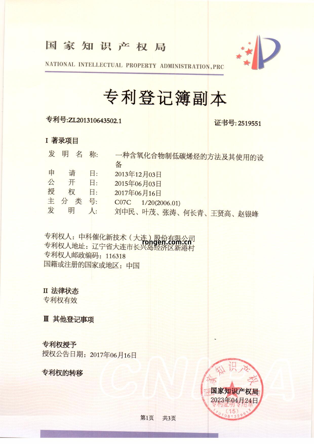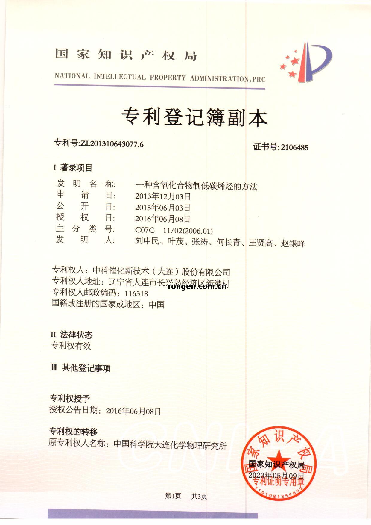 壹種(zhong)含(han)氧化(hua)合物制(zhi)低碳(tan)烯烴的方(fang)法(fa)