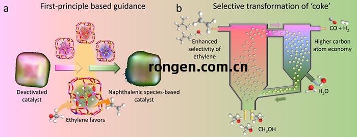 甲(jia)醇制烯(xi)烴(MTO)是(shi)實(shi)現(xian)非石(shi)油資源(yuan)轉化(hua)制取(qu)低碳(tan)烯(xi)烴的(de)關(guan)鍵技(ji)術(shu),自2010年(nian)在(zai)世界上(shang)首(shou)次工(gong)業化(hua)以來,已經成(cheng)為我(wo)國乙烯(xi)丙烯(xi)生產(chan)的重(zhong)要(yao)方(fang)式之(zhi)壹(yi)。MTO反應(ying)采用(yong)分子(zi)篩催(cui)化(hua)劑,反(fan)應(ying)過程(cheng)中催(cui)化(hua)劑因(yin)積碳(tan)而失活,工(gong)業過(guo)程(cheng)中需(xu)要(yao)對催(cui)化(hua)劑進(jin)行頻繁(fan)再(zai)生(sheng)以維持系(xi)統(tong)連(lian)續穩(wen)定(ding)運行。傳統(tong)的(de)催化(hua)劑再(zai)生(sheng)方(fang)式主(zhu)要(yao)是(shi)利(li)用(yong)空氣(qi)或氧(yang)氣(qi)燒除催化(hua)劑積碳(tan)恢復(fu)催化(hua)劑活性(xing),這種(zhong)方(fang)式不(bu)但排(pai)放壹(yi)定的(de)CO2,還(hai)限(xian)制了整個工(gong)藝(yi)碳(tan)原(yuan)子利用(yong)率(lv)的進(jin)壹(yi)步提(ti)高。