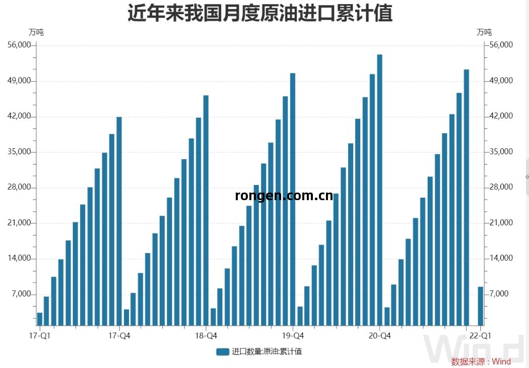 如圖(tu)所示(shi),除(chu)2021年以(yi)外,近年來我國(guo)原(yuan)油進(jin)口均呈現逐(zhu)年升(sheng)高的(de)趨勢